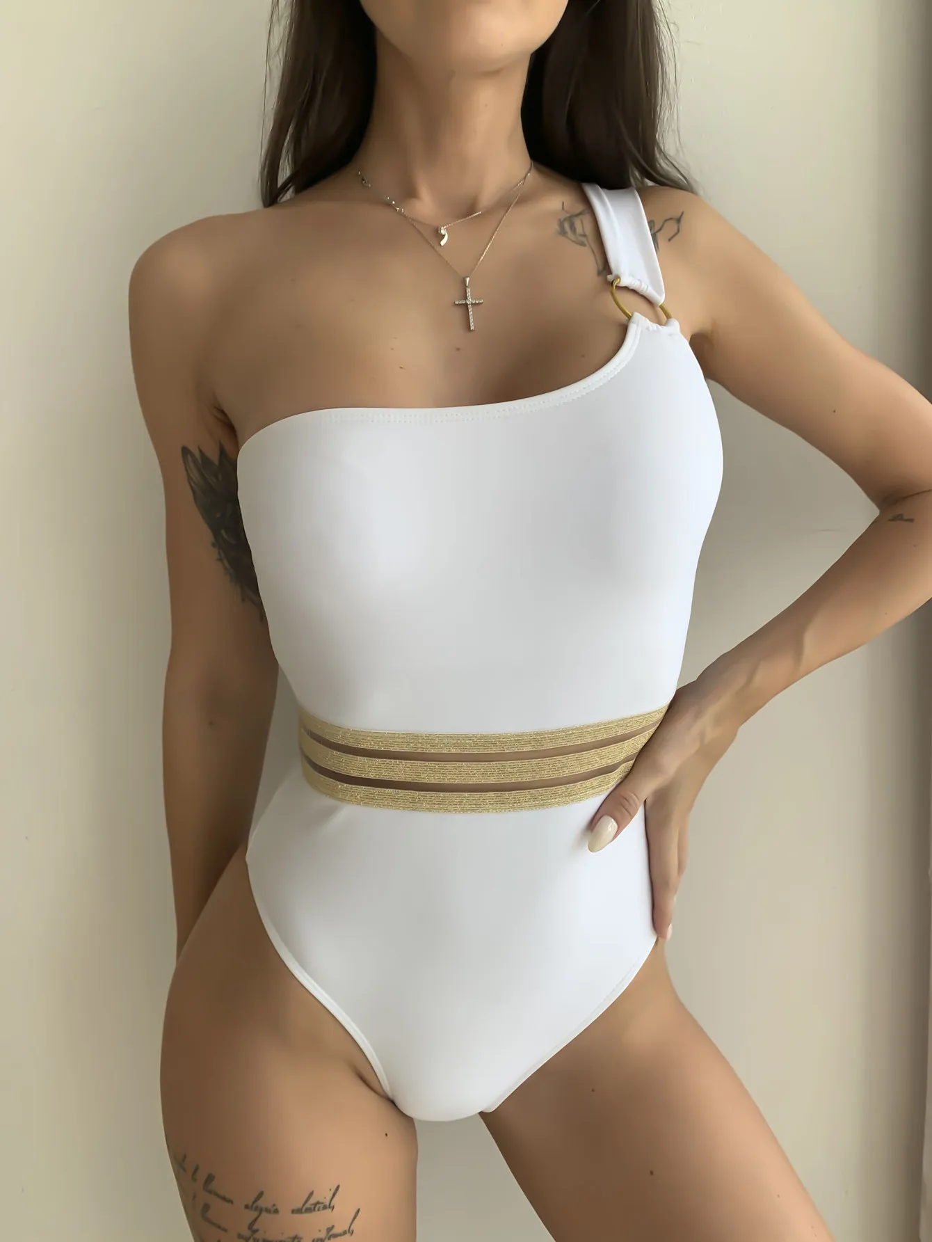 One Shoulder 2021Sexy Women One Piece Swimsuit Solid Swimwear Female Ring Thong Brazilian Monokini Bathing Suit Women