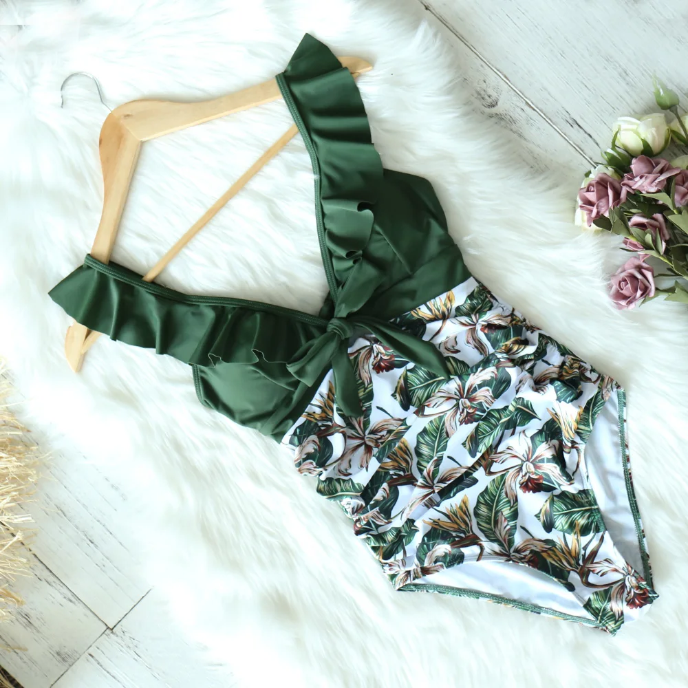 2021 Sexy New Ruffle One Piece Swimsuit Off The Shoulder Swimwear Women Swimsuit Deep-V Bathing Suits Beach Wear Swim Suit