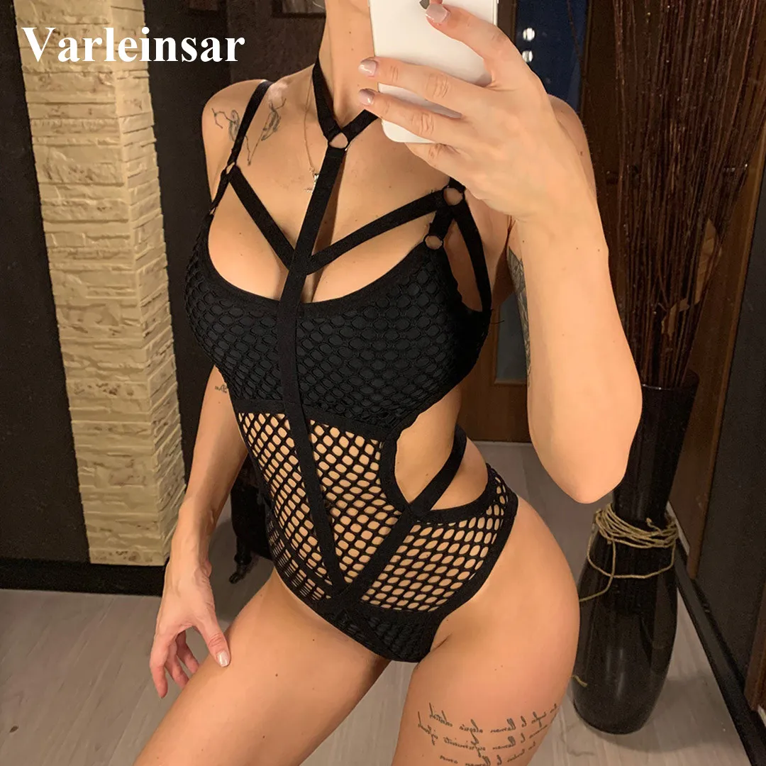 XS - 5XL Sheer Knit Fish Net Mesh Large Plus Size Swimwear Women One Piece Swimsuit Female Bather Bathing Suit Swim Beach V536B