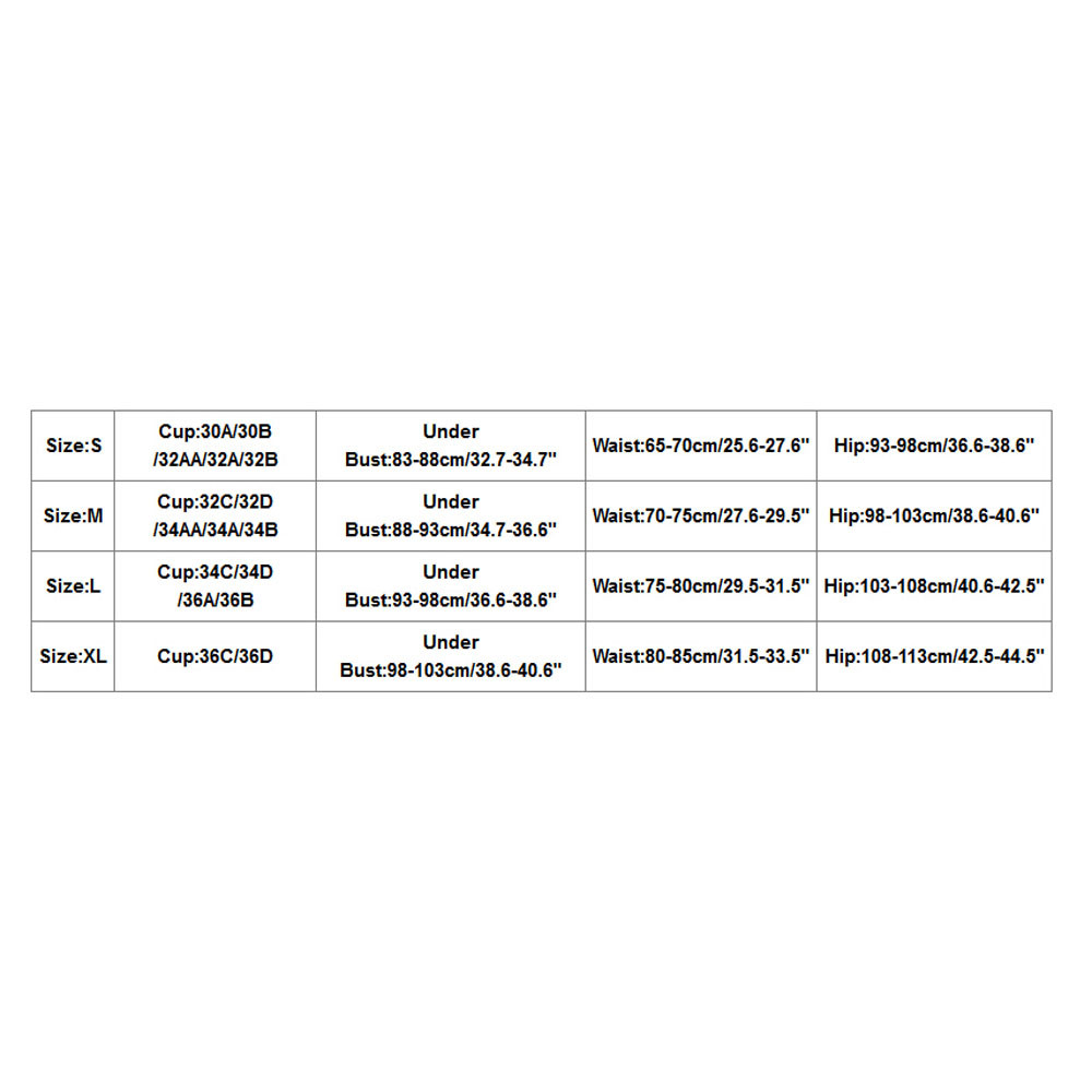 | XL | 36C/36D | 98-103cm/38.6-40.6" | 80-85cm/31.5-33.5" | 108-113cm/42.5-44.5" |