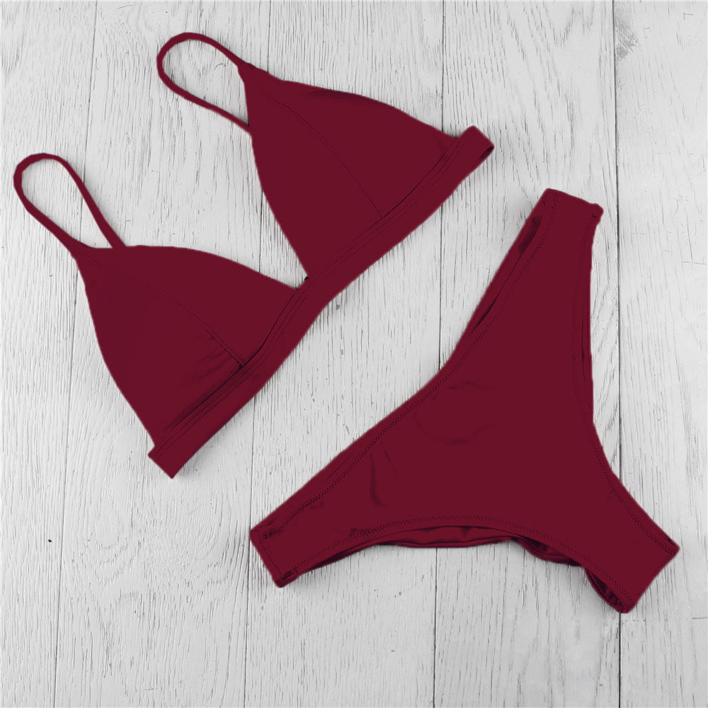Sexy Triangle Bikini Set New Women Solid Bathing Suit Swimwear Summer Beach Wear Female Low Waist Red Swimsuit Biquini D4